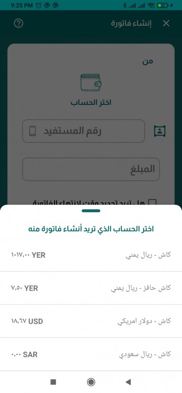 • من تطبيق محفظة كاش اختر أيقونة المشتريات - إنشاء فاتورة.