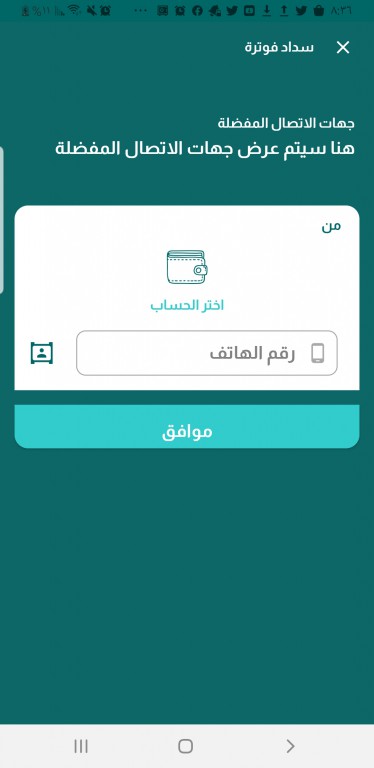 - يقوم العميل من خلال التطبيق باختيار أيقونة سداد الهاتف.