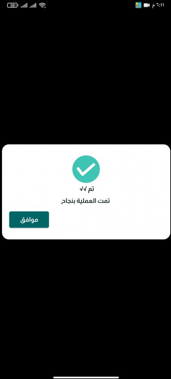 - يظهر إشعار في التطبيق بنجاح العملية وكذلك تصل رسالة نصية للعميل موضح فيها تفاصيل العملية.